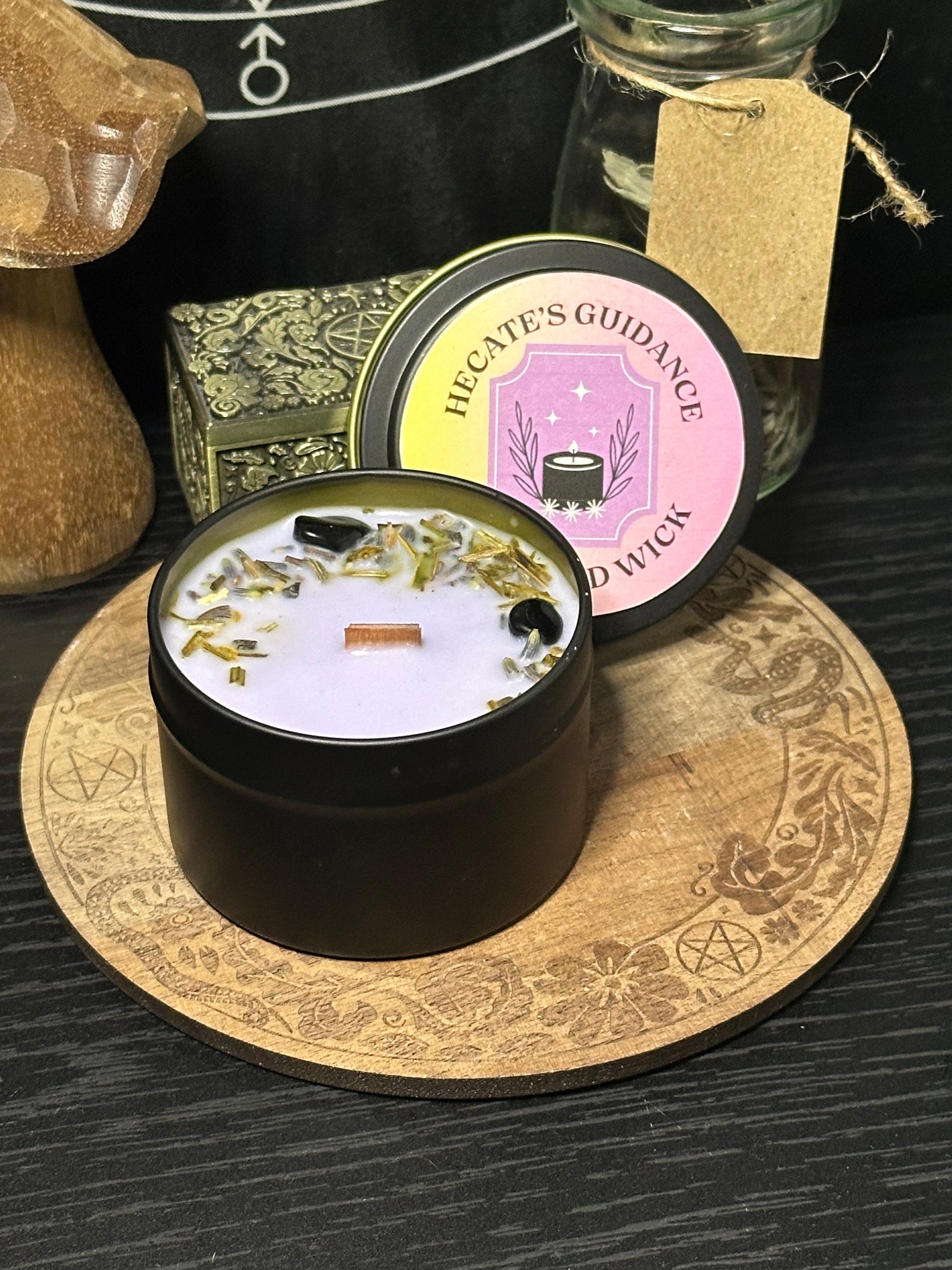 The Hecate’s Guidance Candle is the third in my Deity Series — hand-poured with 100% natural soy wax and infused with amber, lavender, and sweet orange for a warm, grounding and uplifting scent.